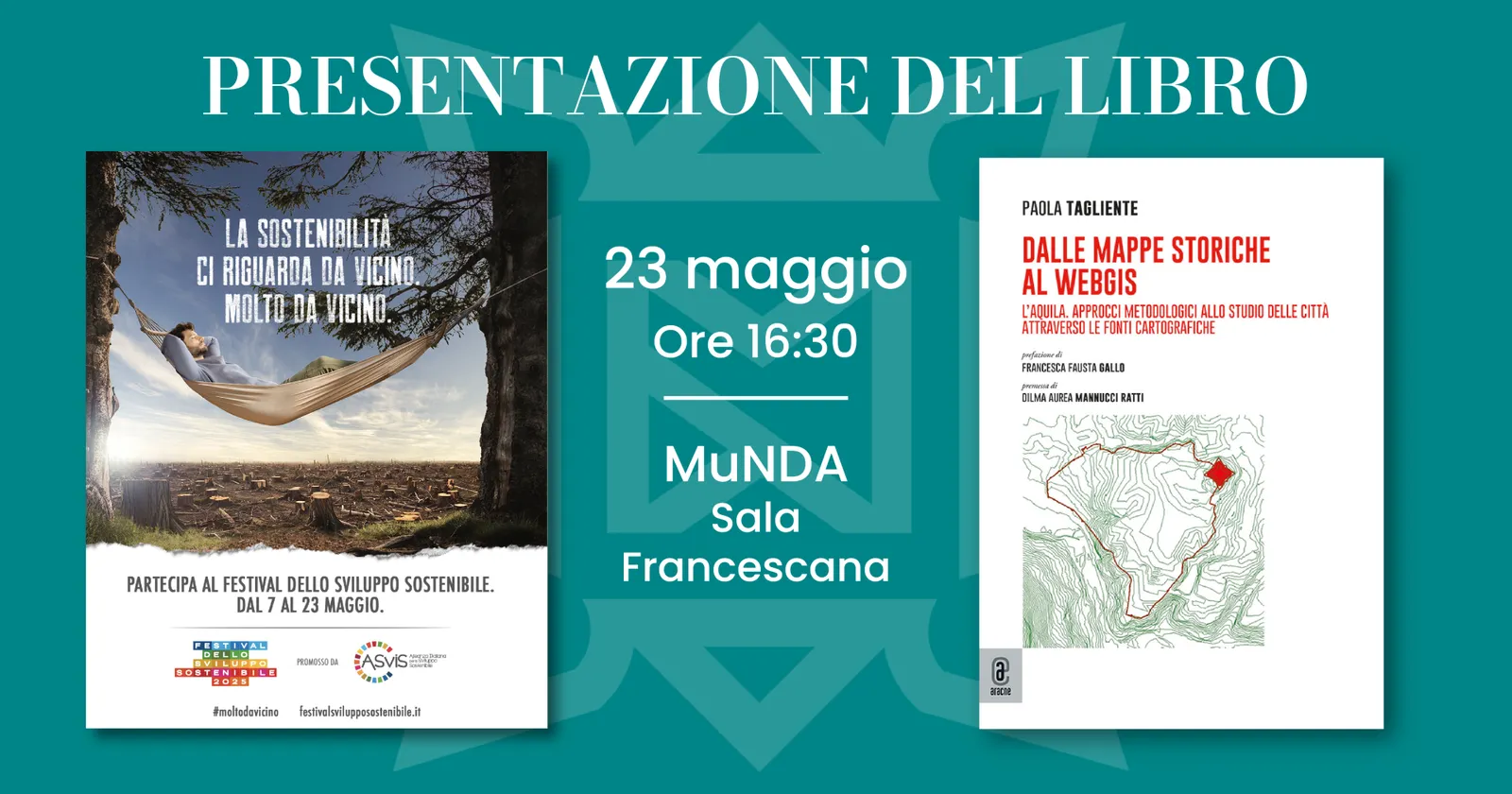 Il Museo Nazionale d’Abruzzo partecipa alla IX edizione del Festival dello Sviluppo Sostenibile, la più grande iniziativa italiana di sensibilizzazione della società civile sui temi della sostenibilità economica, sociale e ambientale, presentando il 23 maggio alle 16.30 il volume di Paola Tagliente Dalle mappe storiche al WebGIS. L’Aquila. Approcci metodologici allo studio delle città attraverso le fonti cartografiche.