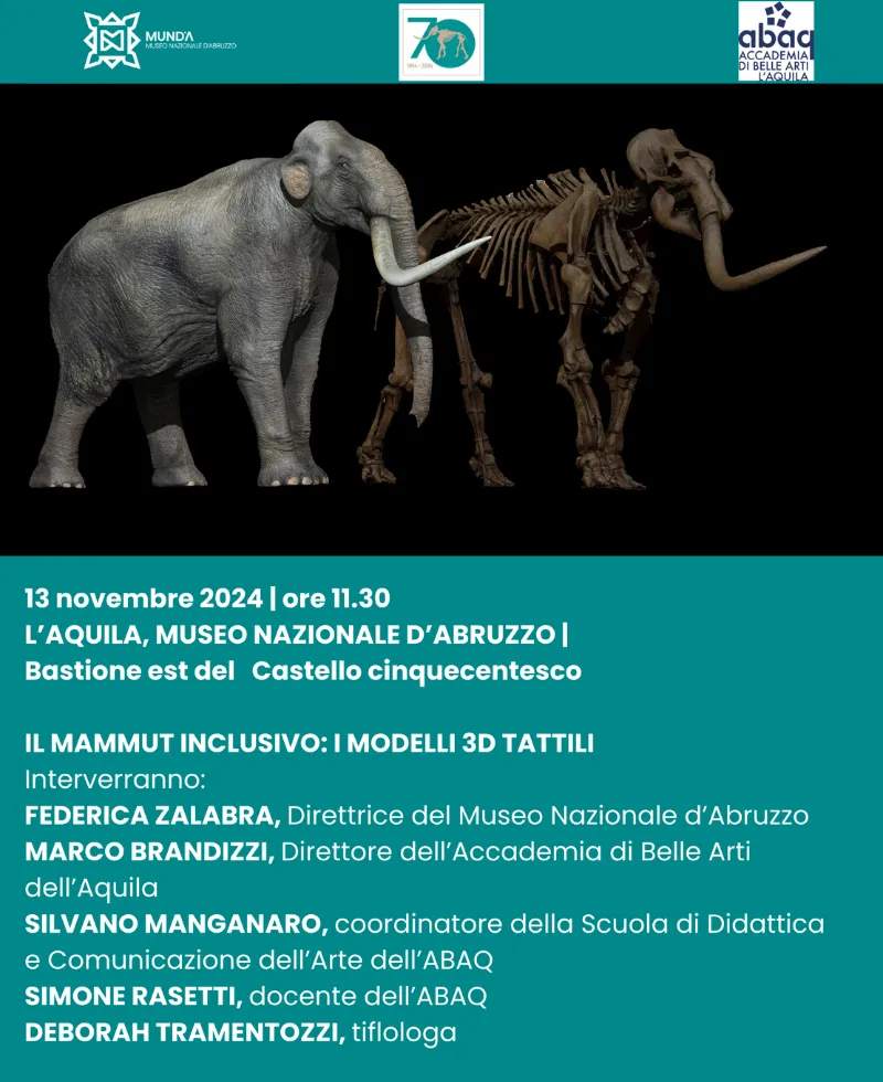 Sarà possibile, attraverso due modelli tattili in 3D esplorabili da tutti e dedicati soprattutto a persone con disabilità visive, accedere alla conoscenza dell’imponente fossile del Mammut vissuto sulle sponde di un lago 1.300.000 anni fa e scoperto nel 1954 in una cava vicino L’Aquila, a Scoppito.