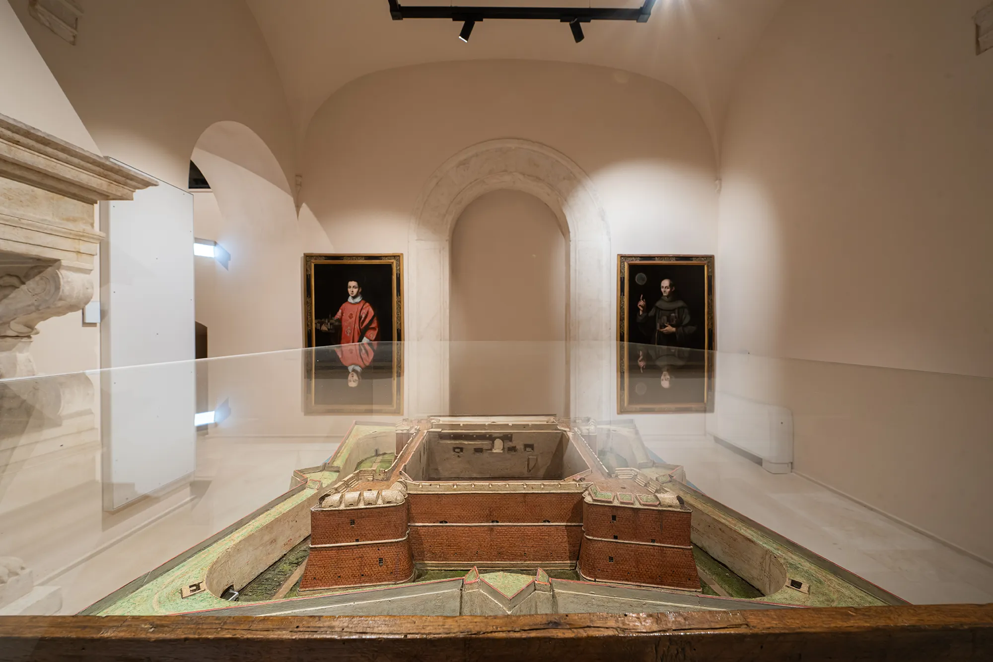 La sala ospita al centro il plastico del castello dell’Aquila realizzato alla metà del XVIII secolo dal duca di Noja Giovanni Carafa. Alle quattro pareti accolgono il visitatore i dipinti dei santi protettori della città di Giulio Cesare Bedeschini.