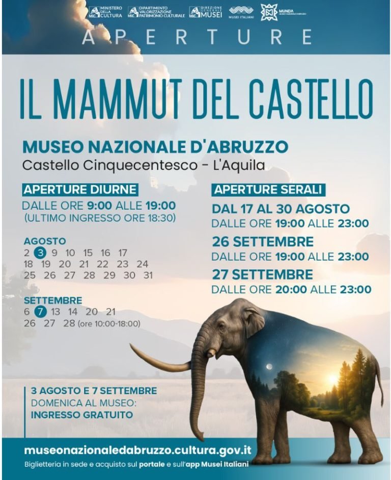 Nei mesi di agosto e settembre il bastione est del Castello cinquecentesco, che ospita lo scheletro fossile del Mammut, sarà aperto al pubblico dal...