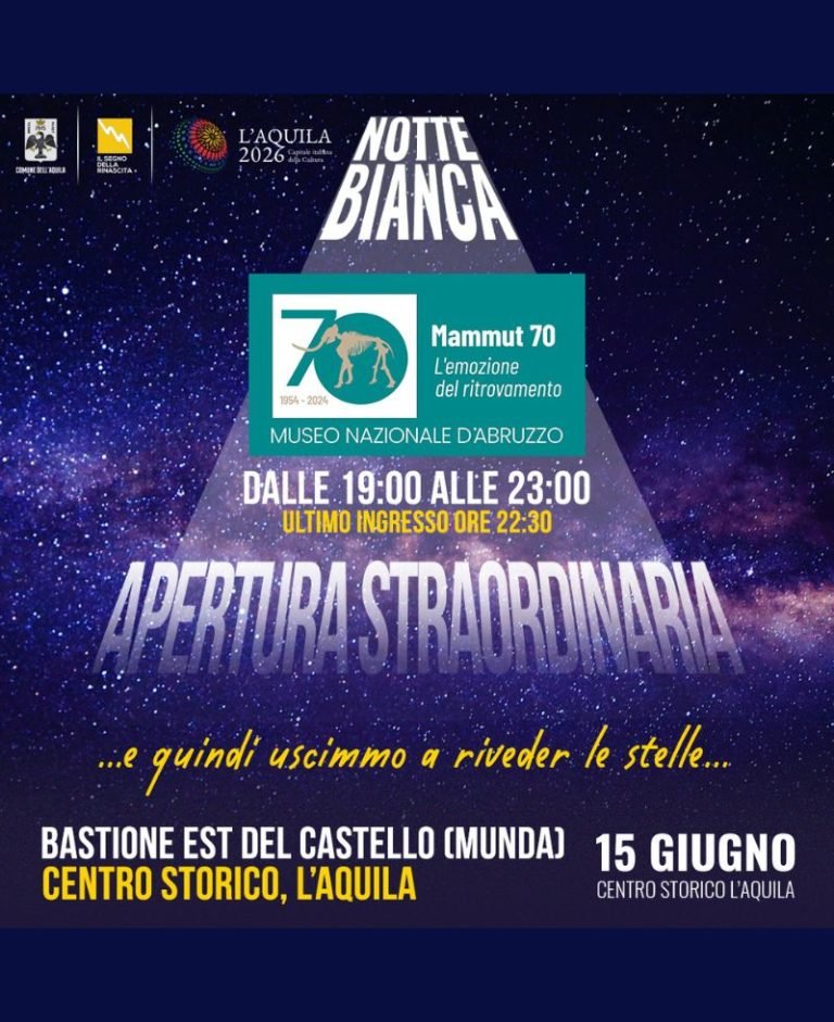 Sabato 15 giugno il Museo Nazionale d’Abruzzo – L’Aquila aderisce alla Notte Bianca, organizzata dal Comune dell’Aquila.
