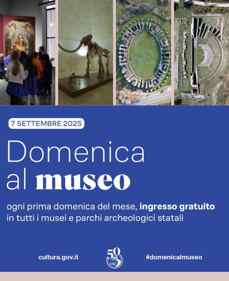 Il 7 settembre si rinnova l’appuntamento con l’iniziativa del Ministero della Cultura Domenica al museo.