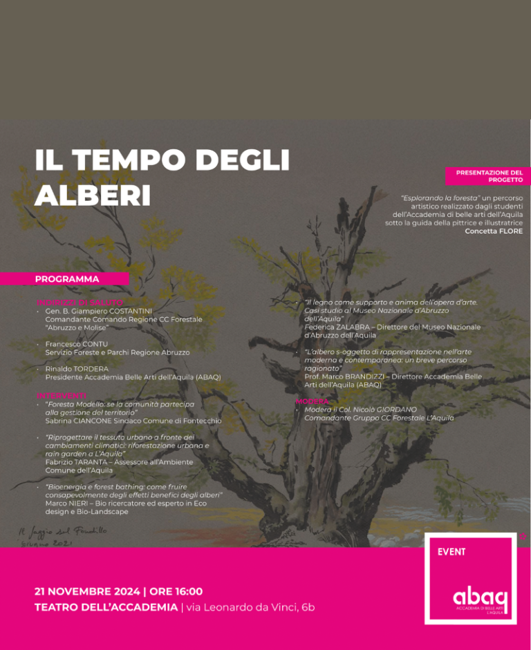 In occasione della Giornata nazionale degli alberi, il 21 novembre alle ore 16 presso il Teatro dell’Accademia di Belle Arti di L’Aquil...