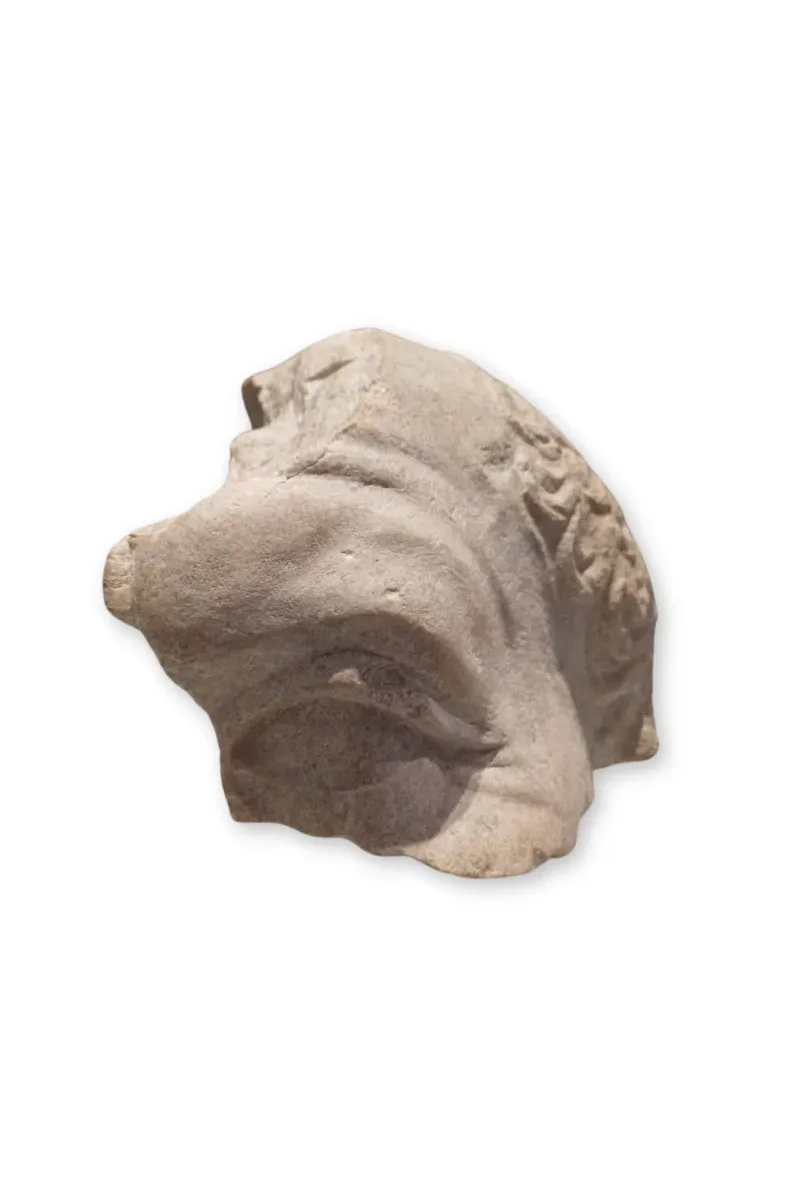Il frammento di ritratto dell’imperatore Vespasiano, che regnò dal 69 al 79 d.C., è riconducibile a una serie di ritratti dell’imperatore detta ufficiale. Nei ritratti di questo tipo i tratti del volto appaiono ringiovaniti e quasi idealizzati, mentre i segni dell’età avanzata, sono ben presenti ma meno accentuati: le rughe, per esempio, sono solo superficiali. Nonostante ciò, nel ritrarre il principe non cè stata la volontà di alterarne drasticamente la fisionomia. La costruzione della testa è massiccia, le rughe sono comunque realistiche, la capigliatura è più rada in corrispondenza della fronte, l’occhio è infossato e le palpebre sono leggermente rigonfie. Non sappiamo quando Vespasiano abbia iniziato a farsi ritrarre così: il ritratto potrebbe essere stato diffuso all’inizio del regno o dopo la sua morte. Come le due maschere, anche questo ritratto è stato ritrovato nella vasca di una fontana posizionata davanti al teatro di Amiternum scavata nel 2014 dell’allora Soprintendenza Archeologia, Belle Arti e Paesaggio dell’Abruzzo. Forse decorava originariamente il fondale scenico del teatro. È suggestiva l’ipotesi che un ritratto dell’imperatore Vespasiano possa essere stato inserito nel teatro per onorare la sua dinastia, la famiglia dei Flavi, originaria della provincia di Rieti, un tempo nell’alta Sabina, la stessa regione di Amiternum.