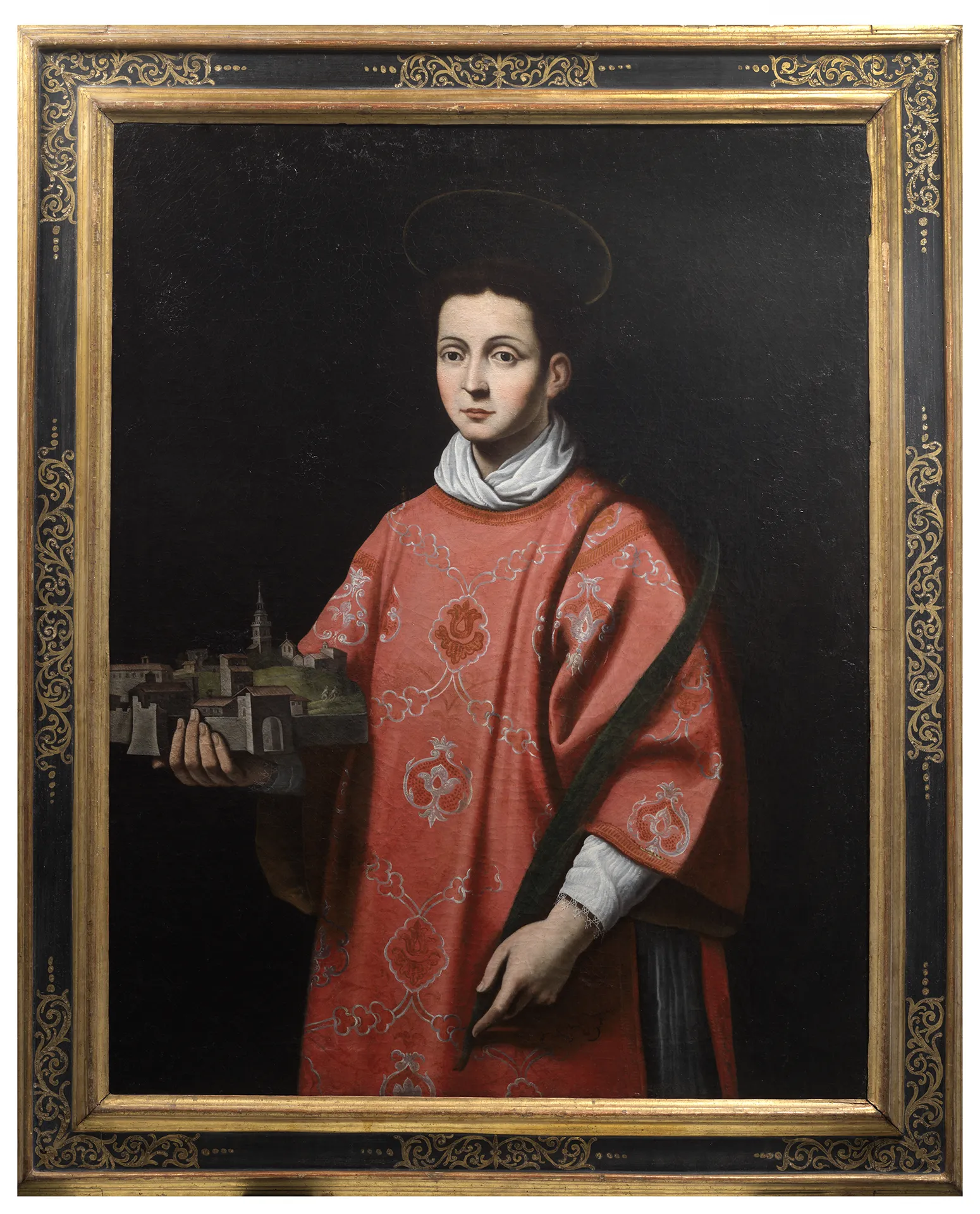 La serie dei quattro santi protettori dell’Aquila fu tra le creazioni più fortunate della produzione di questo artista tanto che numerose furono le repliche e le copie che se ne eseguirono. Rappresentàti a mezza figura e rivolti verso lo spettatore di tre quarti, i santi esibiscono un modellino della città mostrato dalla parte della chiesa dove i loro corpi furono sepolti.