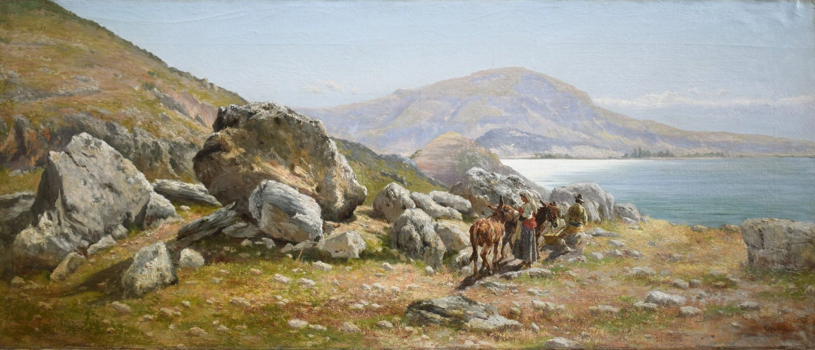 Meno frequente nella produzione dell’artista è la rappresentazione di paesaggi abruzzesi come la Veduta del lago del Fucino. Il motivo, in questo caso, può essere dovuto sia allo scarso interesse degli estimatori di questo genere di pittura verso un territorio generalmente fuori dai percorsi del Grand Tour sia alla difficoltà da parte di quei pittori paesaggisti che risiedevano a Roma di raggiungere luoghi così distanti e per di più pericolosi a causa del brigantaggio.
